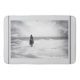 Périodes orageuses - Un cavalier solitaire sur la plage avec une mer orageuse, en noir et blanc