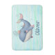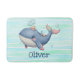 Ce tapis de bain personnalisé présente une mignonne baleine blanche dans un coloris rose et bleu éclatant nageant avec un casquette minuscule.
