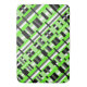 Ce matelas de bain a une touche moderne sur plaid dans les tons vert citron, gris, noir et blanc.