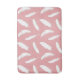Tapis de bain en plumes blanches imprimé sur coquille molle rose - graphisme mixte de médias de plumes blanches, flottant sur un arrière - plan contrasté, coloré