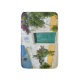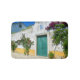 Porte en bois vert aquarelle avec fleurs colorées en fleurs dans un village méditerranéen