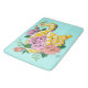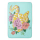 Un Python albino jaune se déplace autour de roses roses et pêche dans un arrière-plan turquoise.