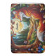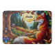 Ce design dynamique reproduit l'apparence du vitrail et présente un beau renard rouge parmi les arbres sous un soleil jaune.