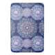 Dessin d'un vitrail d'une ancienne église européenne : une fenêtre rose, avec des touches de couleurs variées, dont des tons bleus, sur un arrière - plan bleu marine. Inposition de strass bleus. Ce motif est également disponible en rouge cardinal dans mes collections "cardinal rouge rosace".
