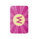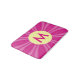 Beau tapis de bain avec rayures roses chaudes rayonnantes partout. Comme un coup de soleil géant rose vif. Un peu comme tye-die, mais ce n'est pas le cas. Comprend le jaune très pâle, cercle dans un motif fractal. Dans le cercle réside une initiale rose. Vous pouvez changer, ou customiser, l'initiale à votre propre, ou la personne que vous souhaitez donner le tapis de bain.