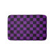 This moody bath mat features a pattern of rustic checks, checkers that are distressed in purple and black.