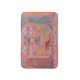 Salle de bain décorée dans des tons rougeâtres avec baignoire de la carte de tarot de haute prêtresse.