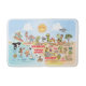 Une scène lumineuse et colorée offre une vue spectaculaire de la Californie du Sud - personnages farfelus sur la plage et le désert de SoCal présentant Los Angeles, San Diego, Orange County, Père Noël Barbara, Riverside, Palm Springs, Anza Borrego et Joshua Tree parcs ainsi que les villes frontalières de Tijuana, Tecate et Mexicali. Cette scène pleine de charme a tout - un surfeur pend dix tandis qu'un orque saute de l'eau, des animaux de zoo accueillent les touristes, un couple de plage musclé à flex pour impressionner comme un T-Rex rugit un défi et un réservoir se met en position et bien plus encore...