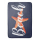 Écriture "plage" blanche côtière/nautique en blanc avec une étoile rouge au centre sur la marine. Accentuez votre salle de bain moderne sur le thème de la plage avec ce tapis de bain confortable et luxueux.