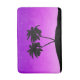 Tapis de bain dans une silhouette de palmiers sur une île tropicale, contre un dégradé violet à violet profond violet arrière - plan avec étoiles