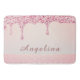Élevez votre salle de bain avec ce tapis de bain élégant à paillettes roses, conçu pour apporter une touche d'éclat et de sophistication à votre espace. Doté d'un faux effet de goutte de paillettes rose vif sur un fond doux et lumineux, le design est accentué d'une lueur subtile et rosée pour une finition luxueuse. Un détail de dentelle délicate le long du bas ajoute un charme féminin. Personnalisez-le avec un prénom pour un style chic et personnel - parfait pour la décoration de maison glamour, les cadeaux d'anniversaire ou les accessoires de chambre universitaire.