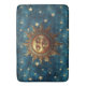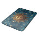 Sur un fond céleste étoilé, le visage serein d'un soleil doré stylisé.