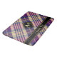 Design écossais violet, jaune doré et bleu. Motif sans couture. Texte et monogramme personnalisés.