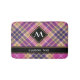 Design rose, jaune doré et écossais bleu. Motif sans couture. Texte et monogramme personnalisés.