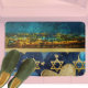 L'oeuvre présente un design mixte. La partie supérieure présente une illustration de Jérusalem en Israël la nuit, séparée par un ruban doré. La section inférieure comprend des illustrations dans les tons bleus des coeurs et des étoiles dorées, faisant référence à l'étoile de David. L'ensemble se caractérise par l'élégance et le raffinement. Qu'il soit utilisé pendant Chanoukah ou pour l'amour de Jérusalem et de la Terre Sainte d'Israël à tout moment de l'année, ce sera un grand ajout à tout décor.
