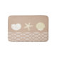 Tapis de sol de salle de bain à thème de plage magnifique dans un design graphique tropical qui comprend un coquillage à dentelle, un coquillage nautile et une étoile de mer, tous conçus pour décorer votre salle de bain dans un décor de Floride ou de bord de mer.