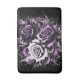 Cette illustration montre trois beaux roses, un blanc et deux violets, entourés d'élégantes décorations noires et violettes. Les tons foncés et les détails complexes créent une atmosphère mystérieuse et gothique, tandis que les parties plus légères ajoutent contraste et profondeur.