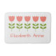Ce mignon tapis de bain comporte cinq grandes tulipes d'inspiration scandinave rose et verte sur un arrière - plan blanc que vous pouvez personnaliser avec votre choix de nom ou de texte spécial. Un rideau de douche est à votre disposition.