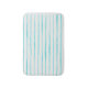 A bathmat in turquoise blue watercolor stripes on a white background is both classic and coastal.