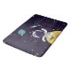 Un natte de bain avec un arrière - plan bleu foncé aux étoiles jaunes éparpillé autour. Couché sur le dessus est l'illustration d'un astronaute vêtu d'une combinaison blanche flottant au-dessus de la lune. Au loin se trouve une planète avec des anneaux et un vaisseau-fusée qui s'envole dans le ciel à la recherche de nouveaux mondes à explorer.