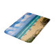 Si vous ne pouvez pas vous éloigner pour une journée à la plage, gardez la plage avec vous avec la photo originale de ZoeSPEAK sur ce Bath Mat. Il offre une vue sur l'océan sous un ciel bleu Floride rempli de nuages blancs bouffants. Les baigneurs se prélassent le long du rivage de sable doré au fur et à mesure que les vagues s'enroulent. Au premier plan, des feuilles de raisins de mer poussent le long des dunes par les escaliers menant à la plage.