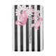 Le design du produit est composé d'un flamant avec des motifs cachemire kaléidoscopiques dans les tons rose sur le noir et blanc rayures arrière - plan. Ce design d'oiseau tropical avec texte personnalisé fait un tapis de bain moderne et unique.