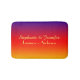 Ce tapis de bain coloré et luxueux avec nom ou nom est un grand cadeau pour un mariage, une cérémonie d'engagement, ou le ménage. Arrière - plan est un arc-en-ciel vif de violet, orange, rouge et jaune. Deux lignes de texte sont jaunes. Parfait pour les LGBTQ, les gays ou les couples hétéros. Tous droits réservés © 2015 Alan & Marcia Socolik.