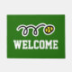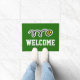Tapis de bienvenue au design de balle de tennis personnalisé. Faites votre propre tapis de porte intérieur / extérieur monogrammé personnalisé avec la couleur et le texte de l'arrière - plan personnalisé. Ajoutez votre propre message de bienvenue, nom de famille, nom de famille, lettre initiale ou citation amusante. Idée cadeau amusant pour nouveau club, maison / chauffage, magasin, magasin, bureau d'entreprise, affaires etc. Typographie sportive moderne avec raquettes de tennis croisées. Modèle personnalisable. Créez votre propre tapis d'entrée classe pour porte d'entrée / entrée ou hall. Décor / décorations personnalisables pour votre maison. Idées cadeaux pour joueur de tennis, ventilateur, coach etc. arrière - plan couleur vert ou personnalisé.