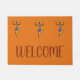 Un tapis de bienvenue d'art tribal d'inspiration africaine avec une femme africaine colorée tenant une bouteille d'eau illustration contre un arrière - plan de couleur terre personnalisable avec signe de bienvenue. Un tapis de porte d'accueil chaleureux, coloré et arty parfait pour votre maison.