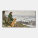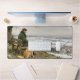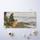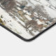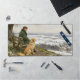 Ce tapis de bureau présente une image numérique d'un homme et de son chien assis et contemplant paisiblement un paysage hivernal, créé par l'artiste numérique Jayne Wilson