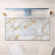 Ce tapis de bureau en marbre blanc Kintsugi moderne et or présente une texture haute résolution, saignée pleine, de marbre de Carrare premium avec des fractures dorées vibrantes partout. Parfait pour les bureaux à domicile de luxe, les postes de travail minimalistes ou comme cadeau élégant pour les designers. Ce tapis de bureau ultra-large ajoute une touche sophistiquée et artistique à n'importe quel poste de travail tout en offrant une surface lisse et performante.