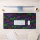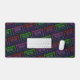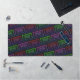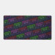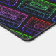Tapis de bureau cassette néon présentant un motif de cassette rétro dans des tons rouges et verts saisissants sur un fond sombre. Les couleurs néon contrastées créent une ambiance rétro audacieuse inspirée de la culture musicale des années 80 et 90.