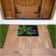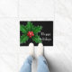 Tapis de porte en noir avec un imprimé saint de Noël festif. Customisez ce tapis ou achetez tel quel.