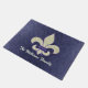 Tapis de porte pourpre élégant, avec grand Fleur Di Lys, au centre. Personnalisez le texte pour lire ce que vous voulez.