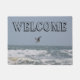 Un tapis de porte présentant une photo d'une mouette volant au-dessus de l'océan Atlantique portant un poisson dans sa bouche.