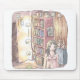 TAPIS DE SOURIS さなくむじ 薄暗いお部屋で本棚のそばに浮いているぼんやり光る物体と女性のイラスト