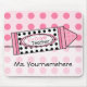 Un mousepad comportant un arrière - plan rose avec le pois rose. Illustration d'assortir le crayon rose au centre. L'étiquette du crayon est blanc avec le pois noir. Le texte sur le crayon lit le "3ème professeur de catégorie." Personnalisez avec votre nom.