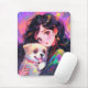 Tapis De Souris Adorable Retro Anime Girl & Her Dog