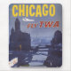 Affiche de voyage d'époque pour les vols de Trans World Airlines à destination de Chicago montrant des ponts enjambant une rivière la nuit, vers 1960.