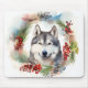 Tapis De Souris Alaskan Malamute Festive de la couronne de Noël