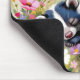 A sweet mouse pad featuring an adorable sleepy skunk napping in a bed of pink and yellow flowers. You can add a name in the personalize area.