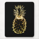Un contour doré griffé d'un ananas brille contre un arrière - plan noir.