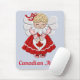 Sweet Angel portant une robe rouge et blanche tout en tenant un coeur blanc avec une feuille d'érable rouge au milieu. C'est aussi la fête du Canada.
