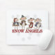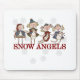 Quatre adorables anges de Noël avec des casquettes d'hiver et des bouffées d'oreilles tiennent chacun un bonhomme de neige et le texte dit "Anges des neiges" sur des T-shirts colorés, des sweatshirts, des cartes de voeux, des tasses, des mousepads et d'autres articles de vacances !