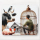 Cette mousepad a des animaux de ferme qui regardent une personne dans une cage en photo dessus.