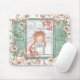 Ce tapis de souris Anne of Green Gables présente notre bien-aimée Anne en regardant par une fenêtre avec des volets verts entourés de fleurs sauvages. L'arrière - plan est blanc vif. Les couleurs comprennent, vert sauge, bleu pâle, orange, rose et blanc.