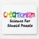 Dans une police appropriée de crayon avec des couleurs lumineuses le mot "créationisme" se tient au-dessus des mots plus petits la "science pour les personnes stupides" dans le texte noir sur les chemises légères et le blanc sur les chemises foncées.