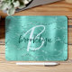 Tapis De Souris Aqua Brushed Metal Glitter Script Monogram