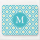 Tapis De Souris Aqua monogramme et Motif Ikat jaune