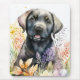 Tapis De Souris Aquarelle Black Labrador Retriever et Fleurs
